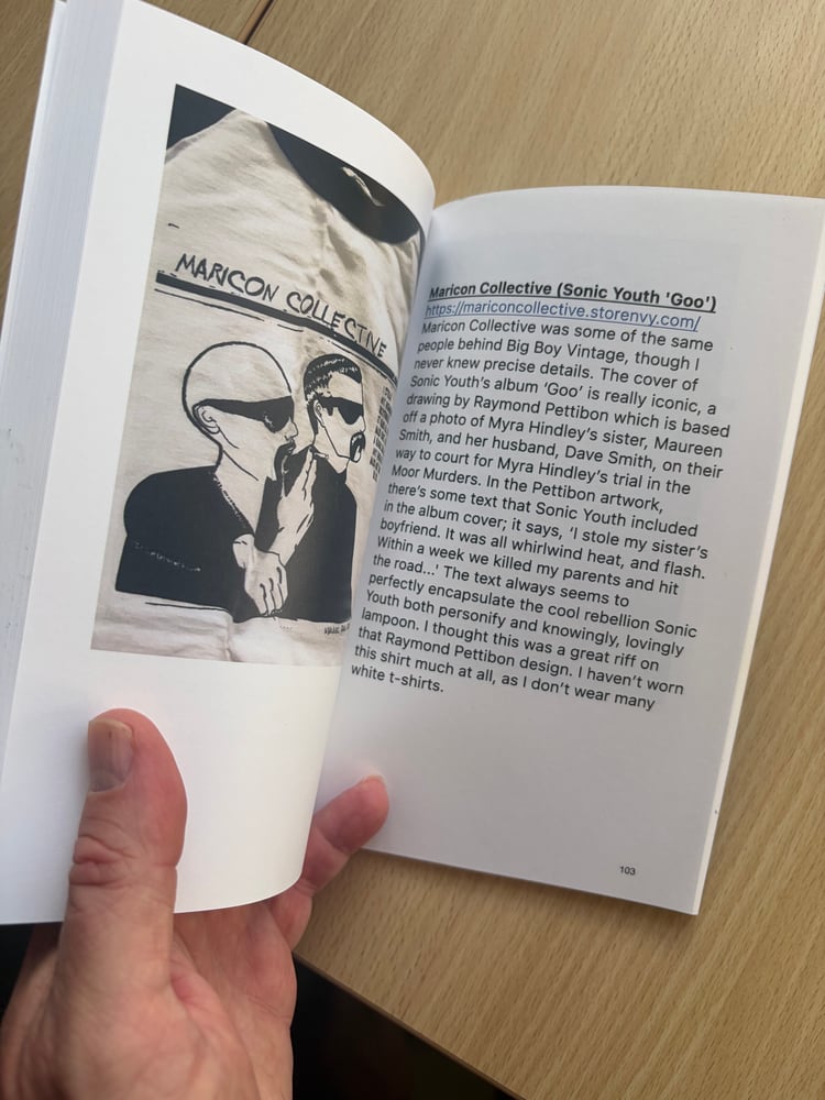 In 2022, I had an exhibition of my t-shirt collection at Passport Gallery in Sydney, and launched this book. It features photos of 50 t-shirts and the stories associated with each. Lots of these relate to obscure bands, bars, and artists that no longer exist.