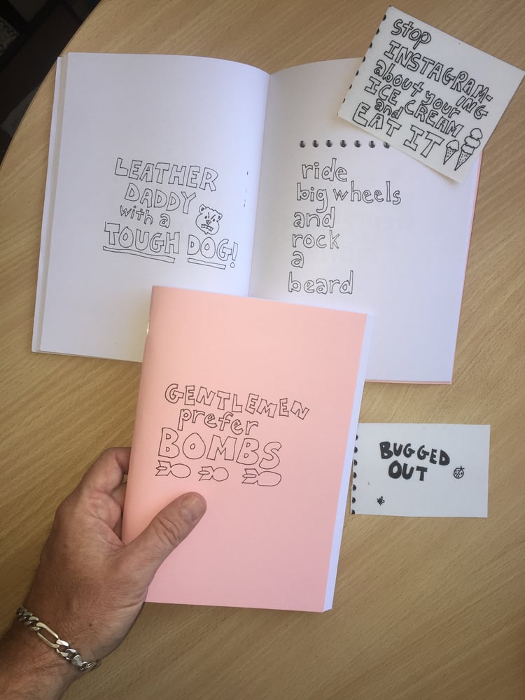 Compilation of word-based sticker art. Assembled by hand and numbered, limited run of 100. Each comes with a free sticker (a new series not included in the book - rare as hen's teeth!) You don't need to stand in a smelly Sydney laneway on your tiptoes leaning over a puddle of vomit trying to get a picture of one on a street sign anymore. This zine was a big hit with the 60 and over crowd at MABF, because the title I think (my reference points run wide and deep)